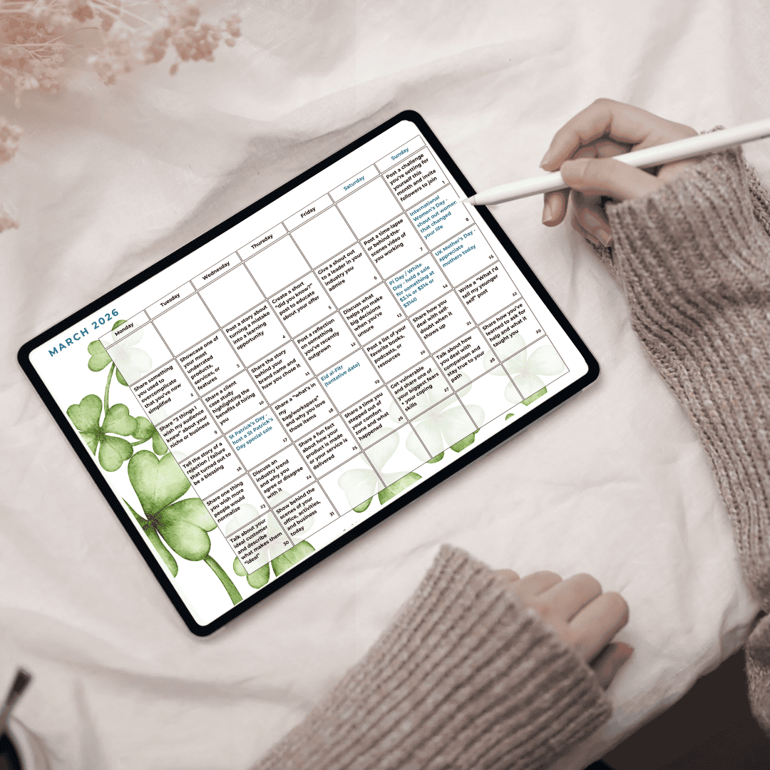 Consult your beautiful printable PDF calendar or your Notion doc every day for a post prompt (or mix and match!).