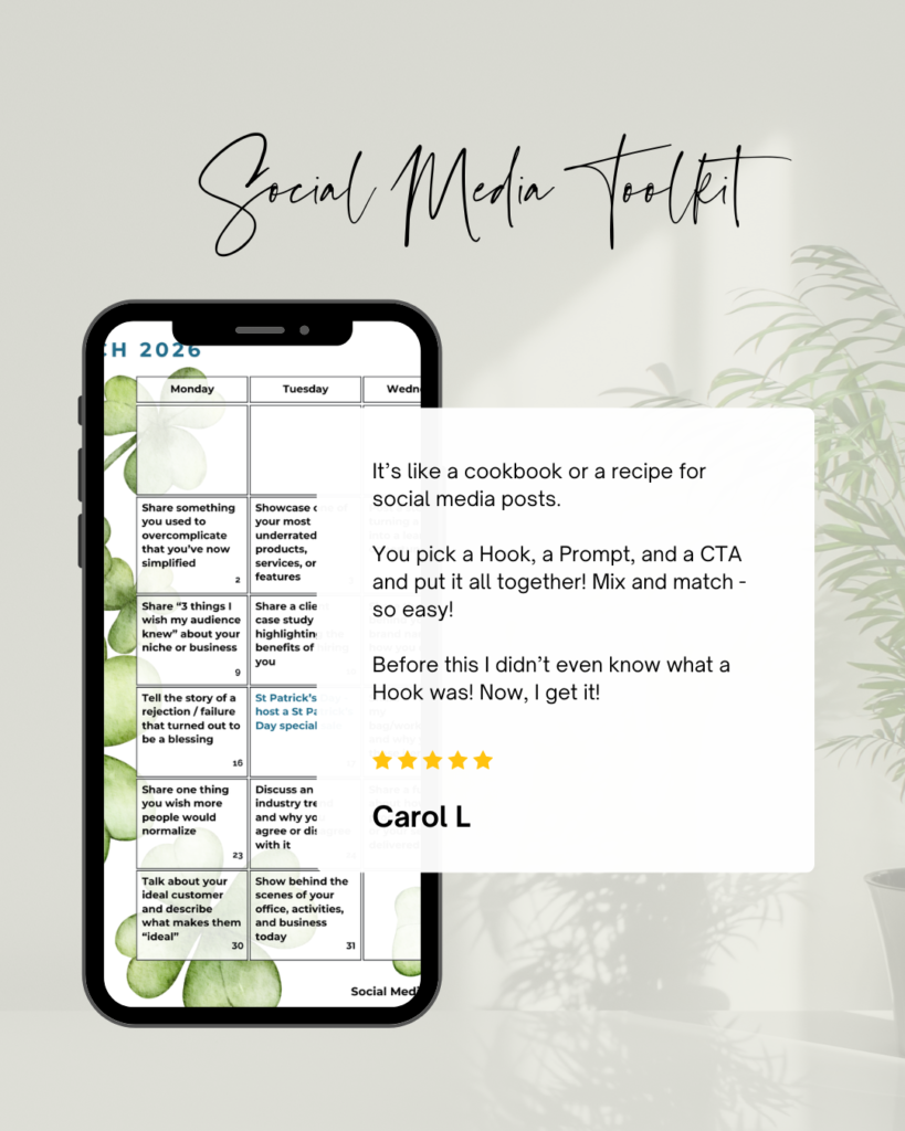 Get 365 daily social media post prompts, 150 viral video and caption hooks, plus 93 high-converting call-to-actions…so you never have to wonder what to post, again!